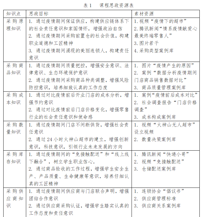 在课程思政教学目标构建的基础上,《连锁企业商品采购管理》课程思政的建设团队因事而化,深挖疫情与课程教学的契合资源,形成了课程的思政资源库。目前,基于疫情期间已形成案例库8个、视频资源6个、各类数据报道16个、图片若干。